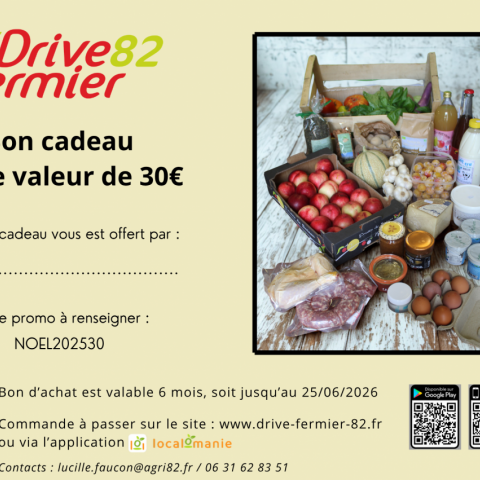 Pour les Fêtes, offrez un bon cadeau sur le site du Drive Fermier 82 !