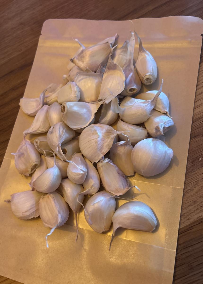 Ail issu de notre production, débriné et préparé à la main à la ferme.