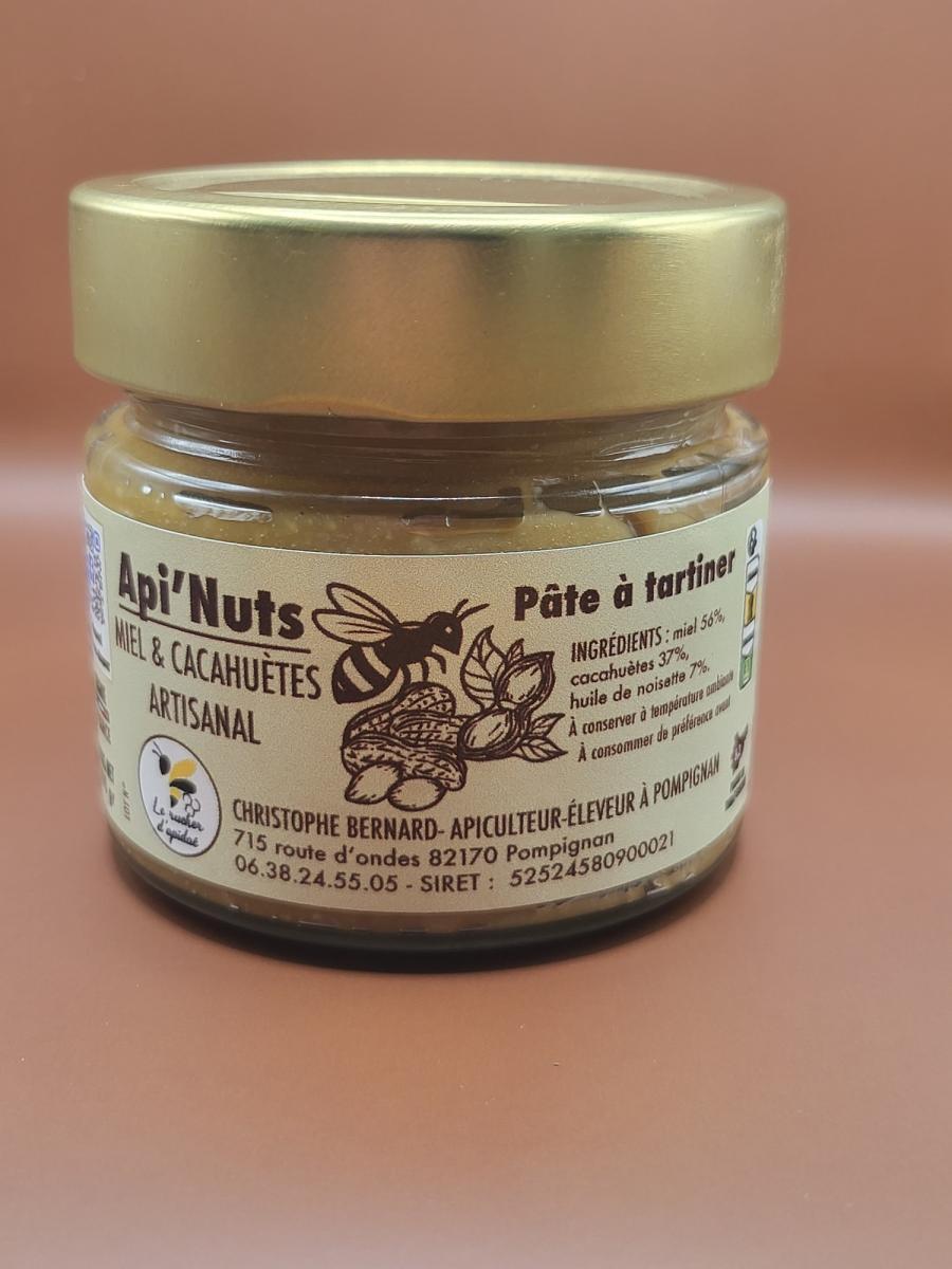 Ingrédients : Miel toutes fleurs 56%, cacahuètes 37%, huile de noisette 7%
