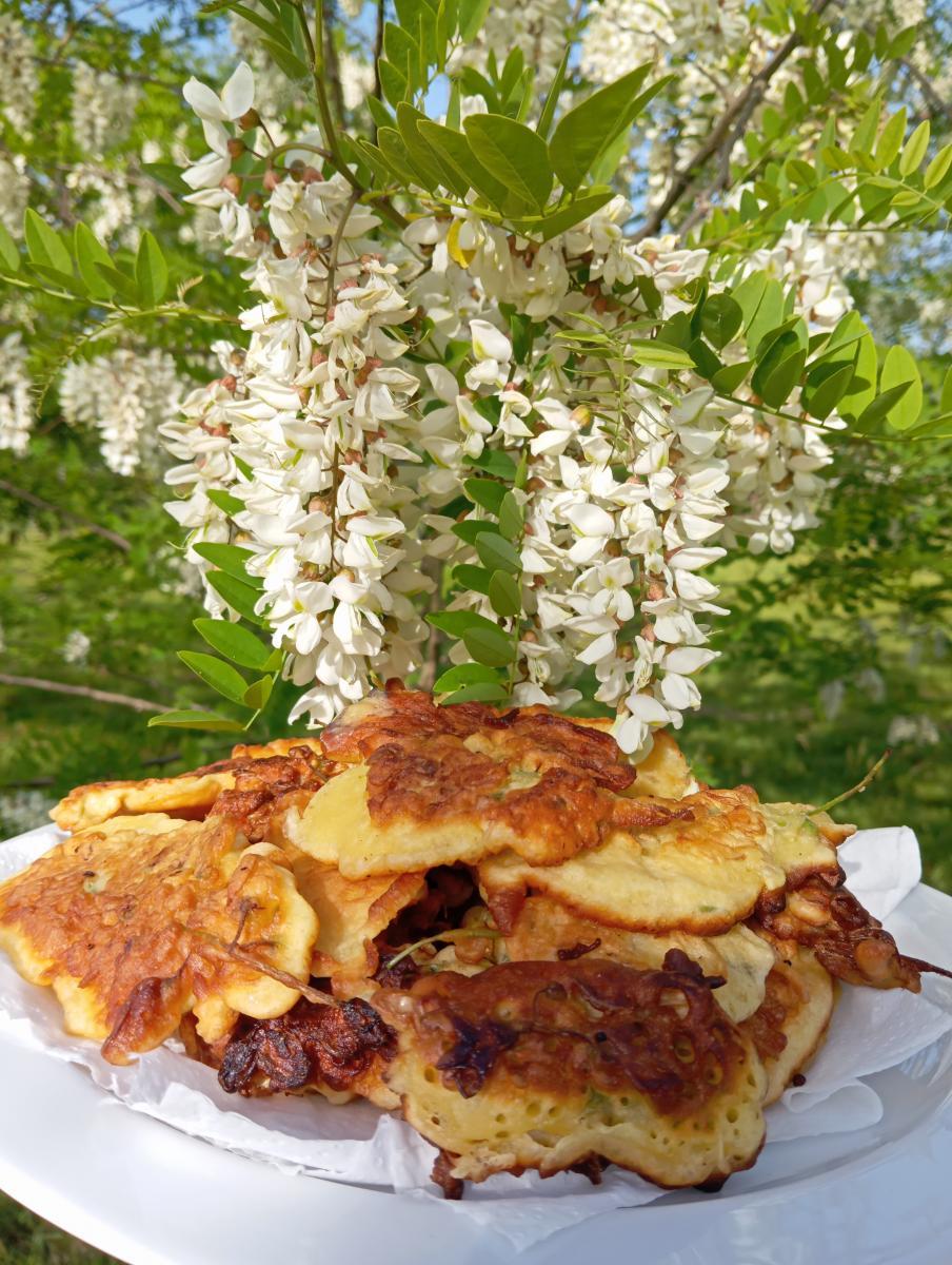 Beignets d'acacia avec les fleurs de l'exploitation en bio frit à l'huile.