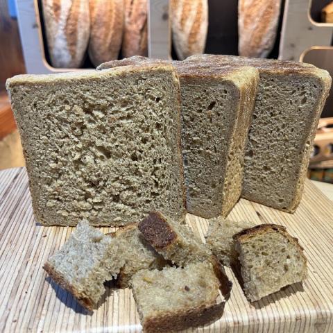 Le dernier arrivé, un pain de mie semi-complet avec de la farine de blé, levain de blé, du malt...