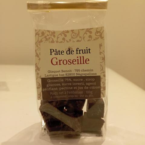 Pâte de fruit 75% exclusivement de groseille et que 25% de sucre.