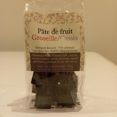 Pâte de fruit 75% exclusivement de groseille/cassis et que 25% de sucre.