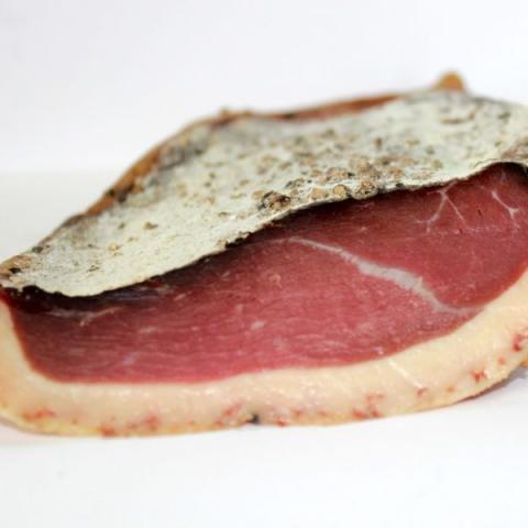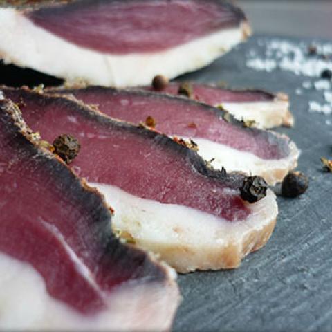magrets de canard séché, tranché, sel, poivre, en poche sous vide