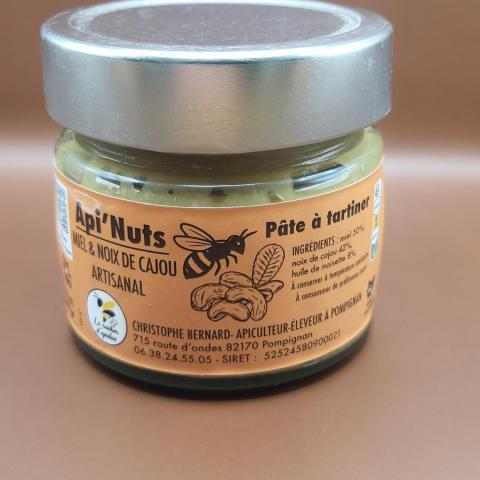 Ingrédients : Miel toutes fleurs 50%, noix de cajou 42%, huile de noisette 8%