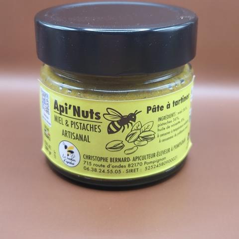 Ingrédients : Miel toutes fleurs 56%, pistaches 36%, huile de noisette 8%