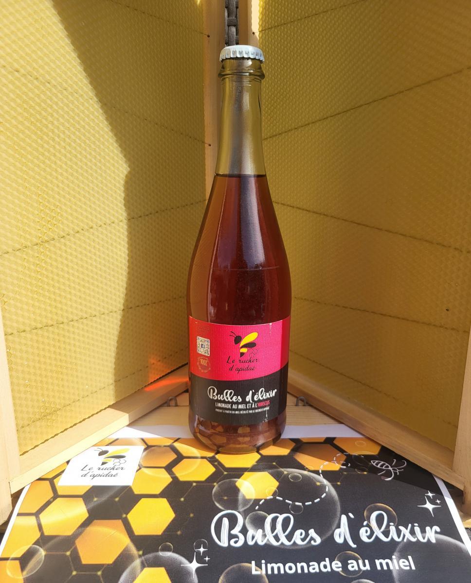 eau, miel 11%, jus de citron, fleurs d'hibiscus 1%, gaz carbonique