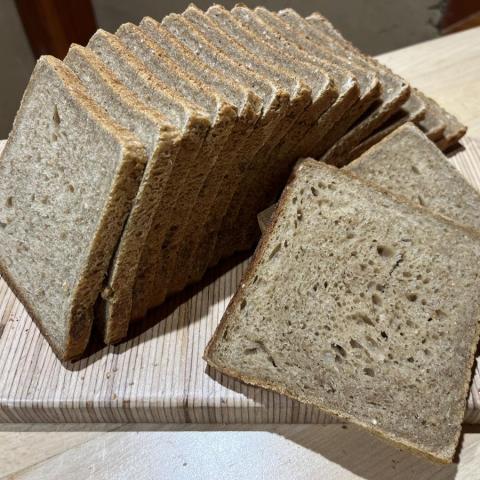 Le pain de petit épeautre ou engrain (triticum monococcum), farine bise d'engrain sur meule de pierre, panification au levain naturel de petit épeautre, disponible en pains moulés.