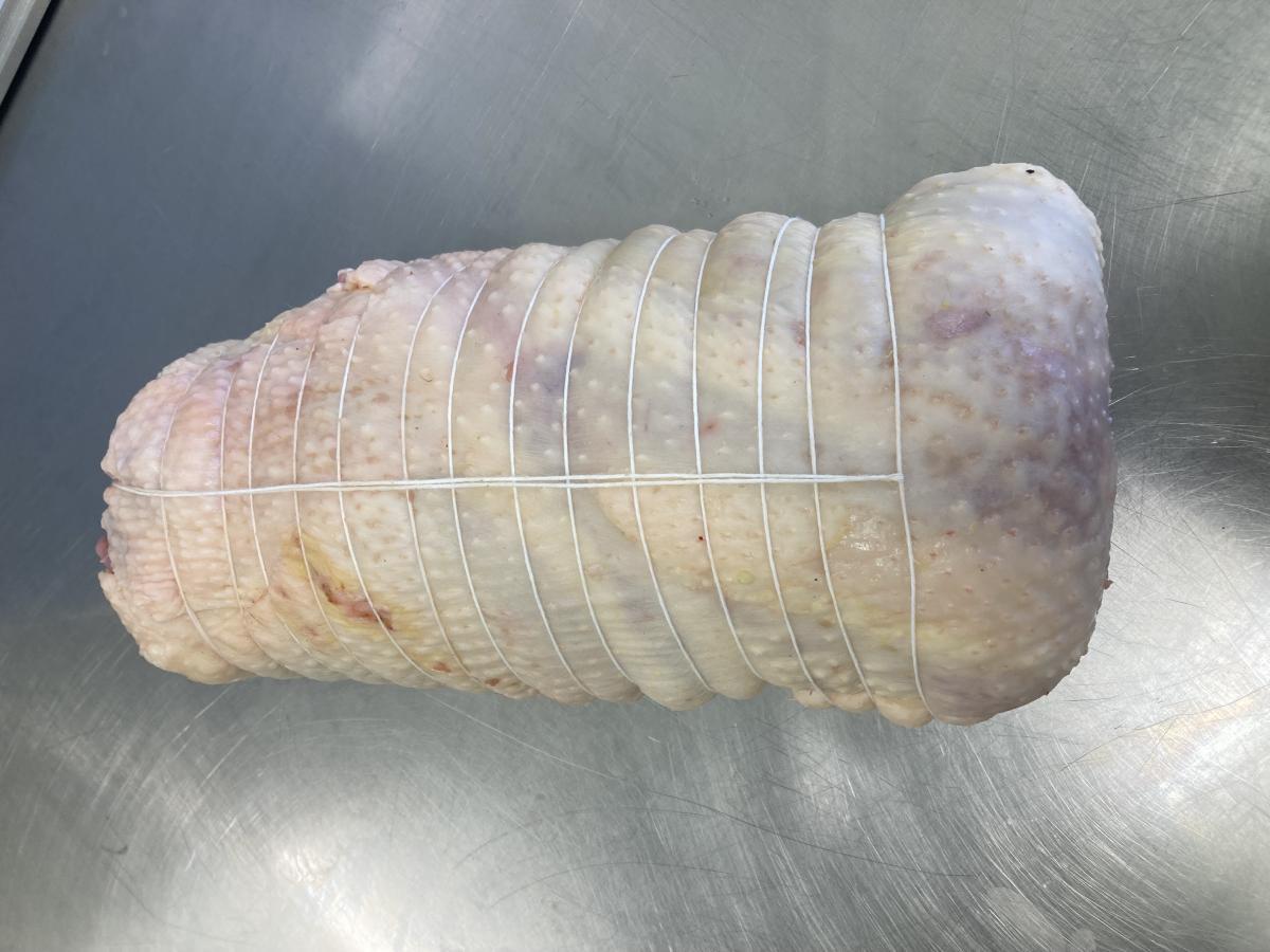 Rôti de pintade farce foie gras (chair à saucisse, pain, ail, persil, oeufs, foie gras)